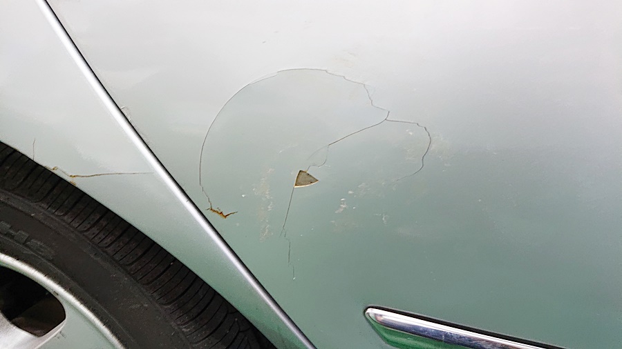 손상된 부분 도장이 벗겨 질정도로 심각해서 도장이 갈라진 부분이 자국이 남긴 했지만